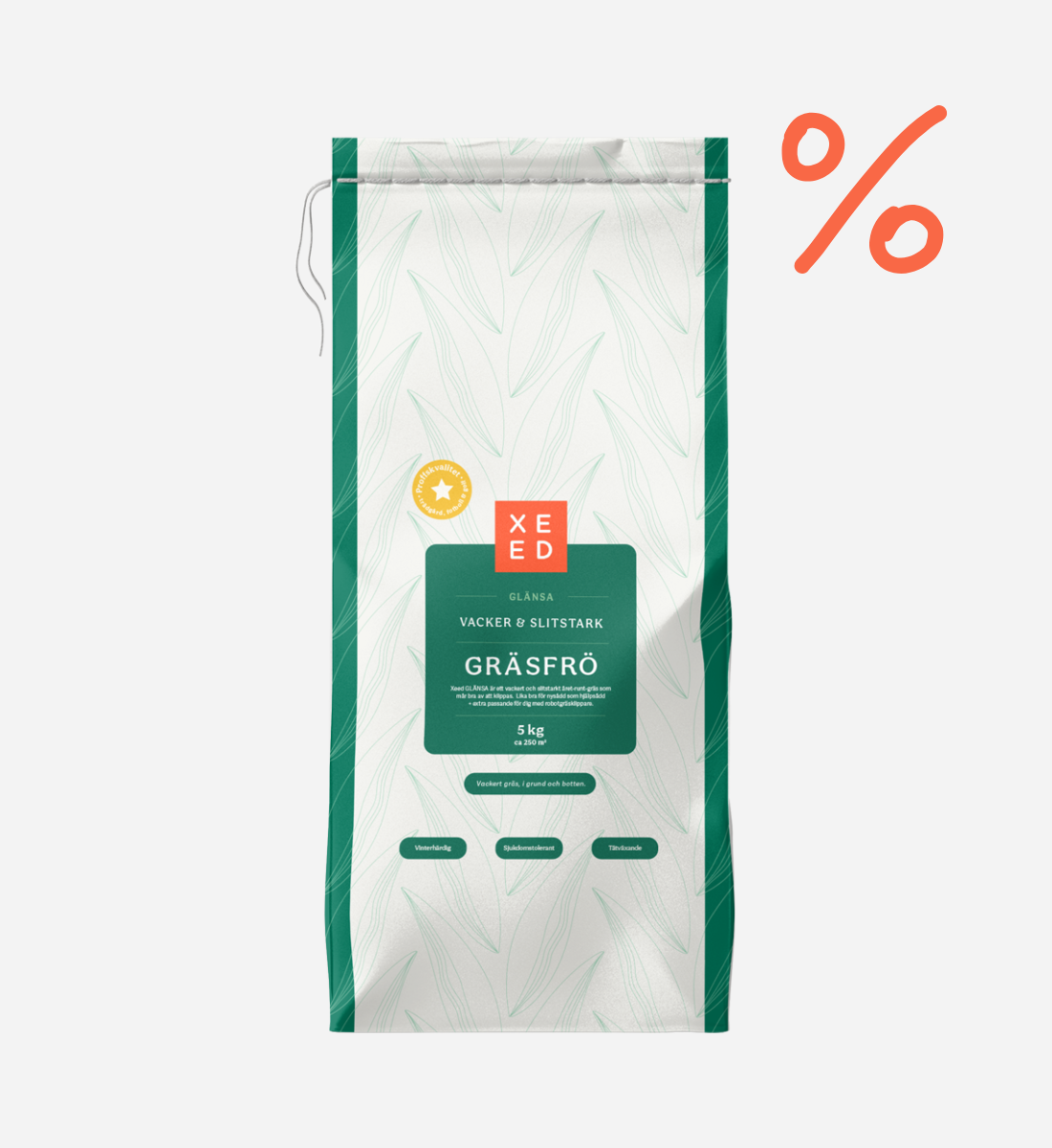 Xeed GLÄNSA har en mycket hög sjukdomstolerans tack vare mixen av tre gräsarter. Gräsfrömixen mår bra av att klippas och passar därför utmärkt för dig som använder robotgräsklippare. Blandningens finbladighet skapar en attraktiv gräsmatta med högt prydnadsvärde, som snabbt kommer att återhämta sig vid eventuella skador som kan uppstå.