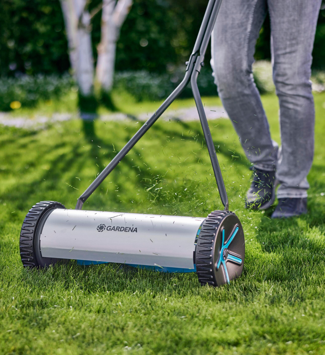 Med fem vassa blad och en klippteknik som påminner om saxning klipper den gräset renare än många traditionella gräsklippare. Lätt att rulla över gräsmattan tack vare stora drivhjul och låg vikt.