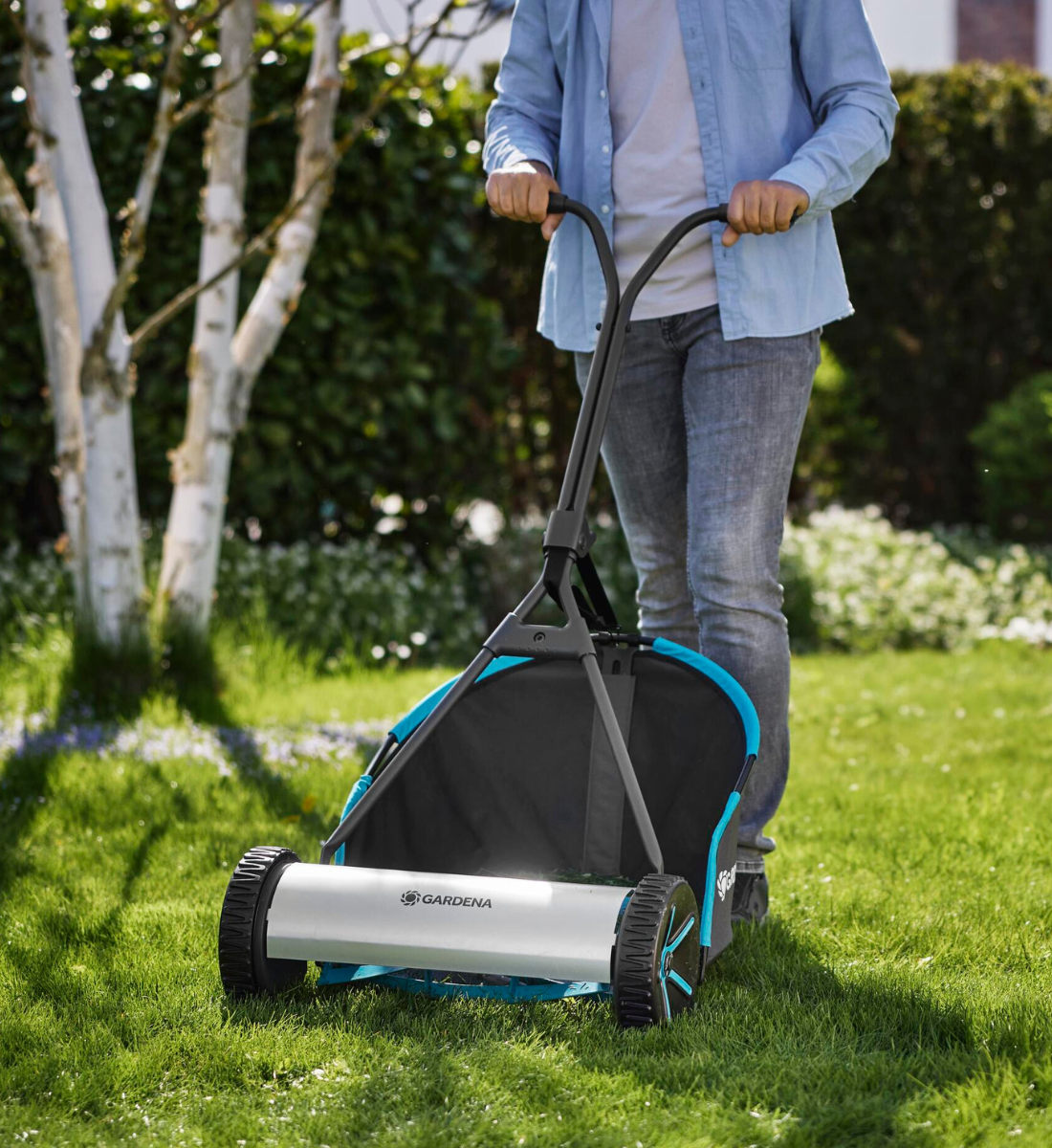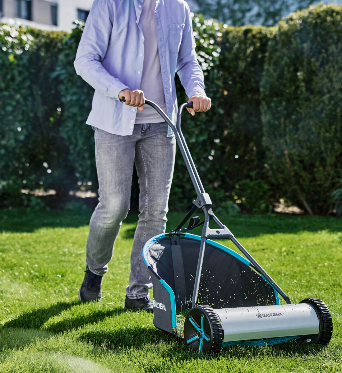 - Manuell cylindergräsklippare – ingen el eller bensin behövs